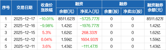 南矿集团:融资净偿还5725.77万元,创历史新高(12-17)