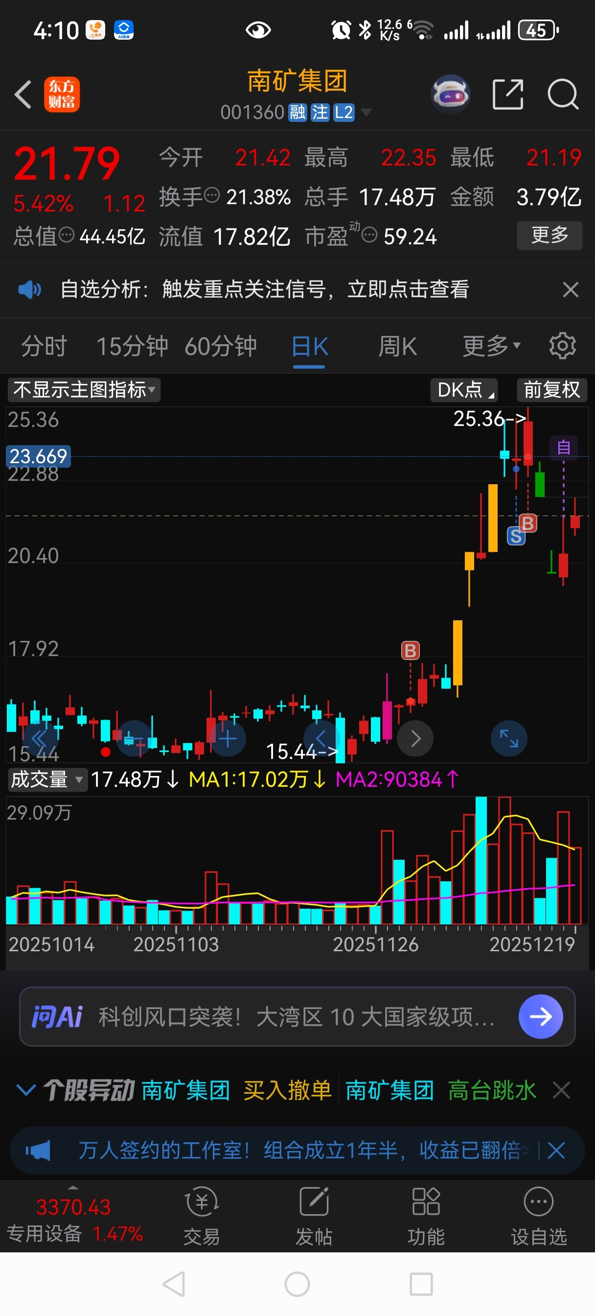 $南矿集团(SZ001360)$ 3成仓吃了41个点,满仓吃了俩跌停