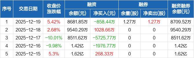 南矿集团:融资净偿还858.44万元,融资余额8681.85万元(12-19)