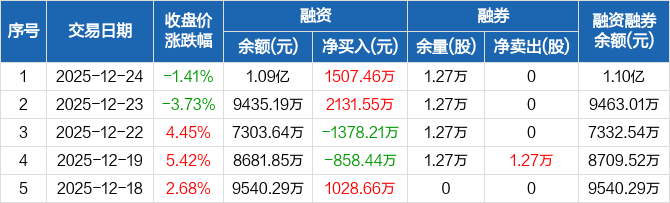 南矿集团:融资净买入1507.46万元,融资余额1.09亿元(12-24)