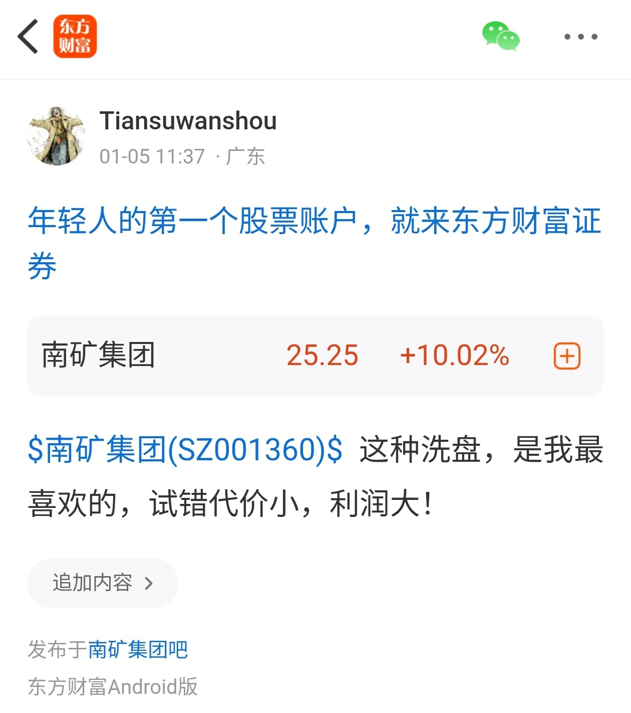 温馨提示: 1.根据《证券法》规定,禁止编造、传播虚假信息或者误导性信息,扰乱证券市场;2.用户在本社区发表的所有资料、言论等仅代表个人观点,与本网站立场无关,不对您构成任何投资建议。用户应基于自己的独立判断,自行决定证券投资并承担相应风险。《东方财富社区管理规定》