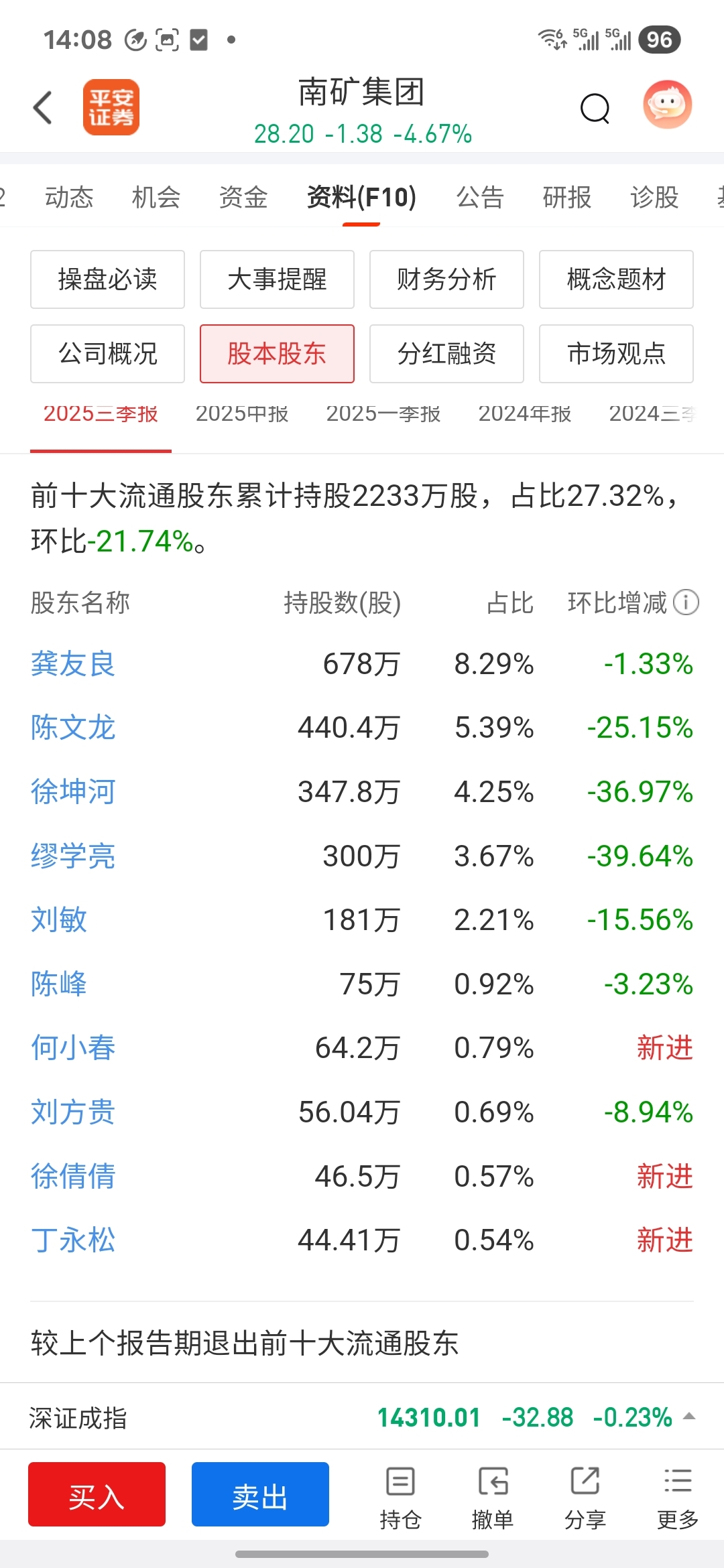$南矿集团(SZ001360)$ 这股到顶了,赶紧跑,股东都减仓了