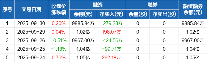 海森药业:融资净偿还279.23万元,融资余额9885.84万元(09-30)