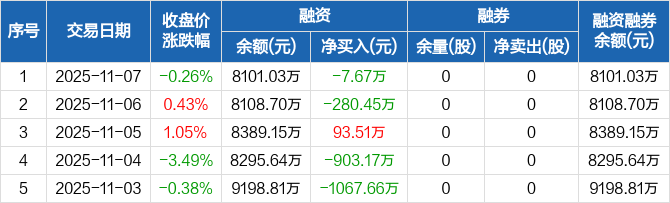 海森药业:融资净偿还7.67万元,融资余额8101.03万元(11-07)