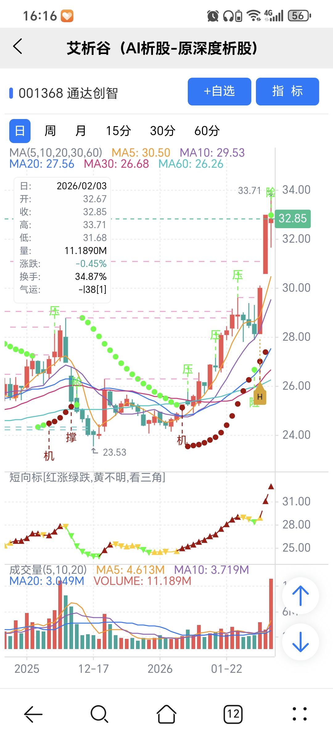 风险:股价下穿艾短波或红变绿、绿字。