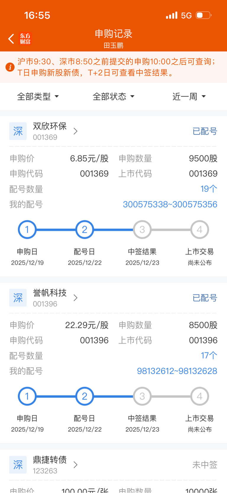 $双欣环保(SZ001369)$ 请问一下中了吗?