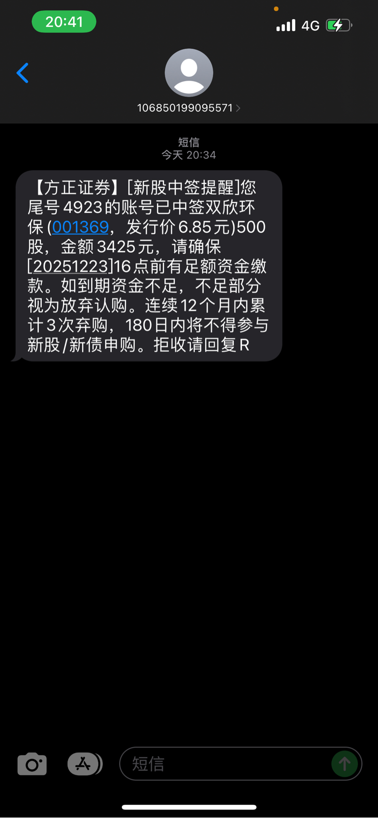 $双欣环保(SZ001369)$ 短信报喜 、打开账户,喜中一签;2025完美收官,2026扬帆起航