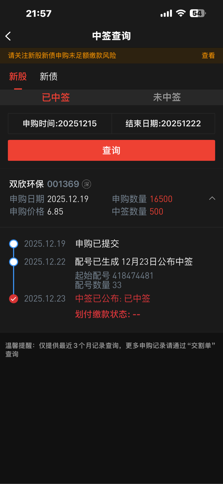 $双欣环保(SZ001369)$ 今年第5签牙签肉哎没命中签高价股啊