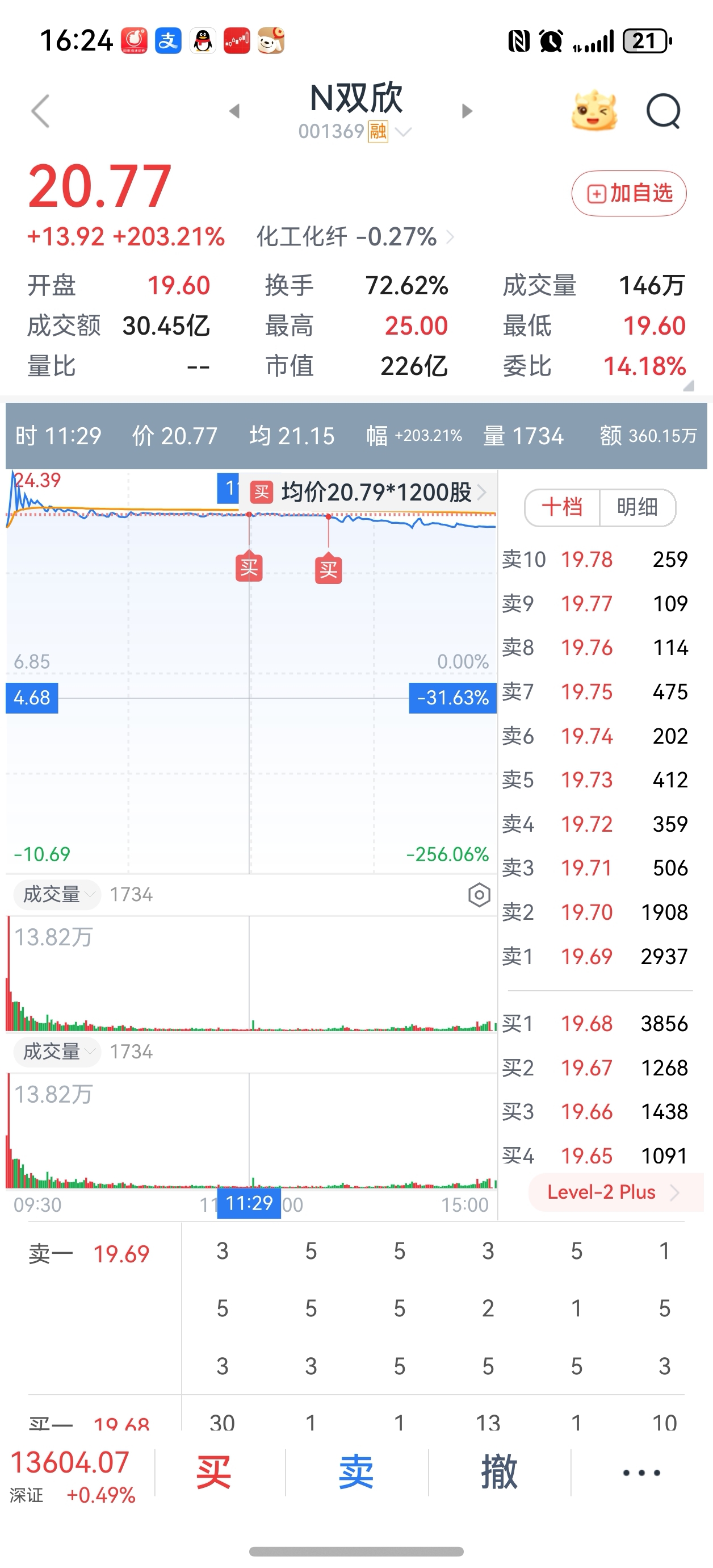 $N双欣(SZ001369)$ 我就问问20.79买入的还有救吗?