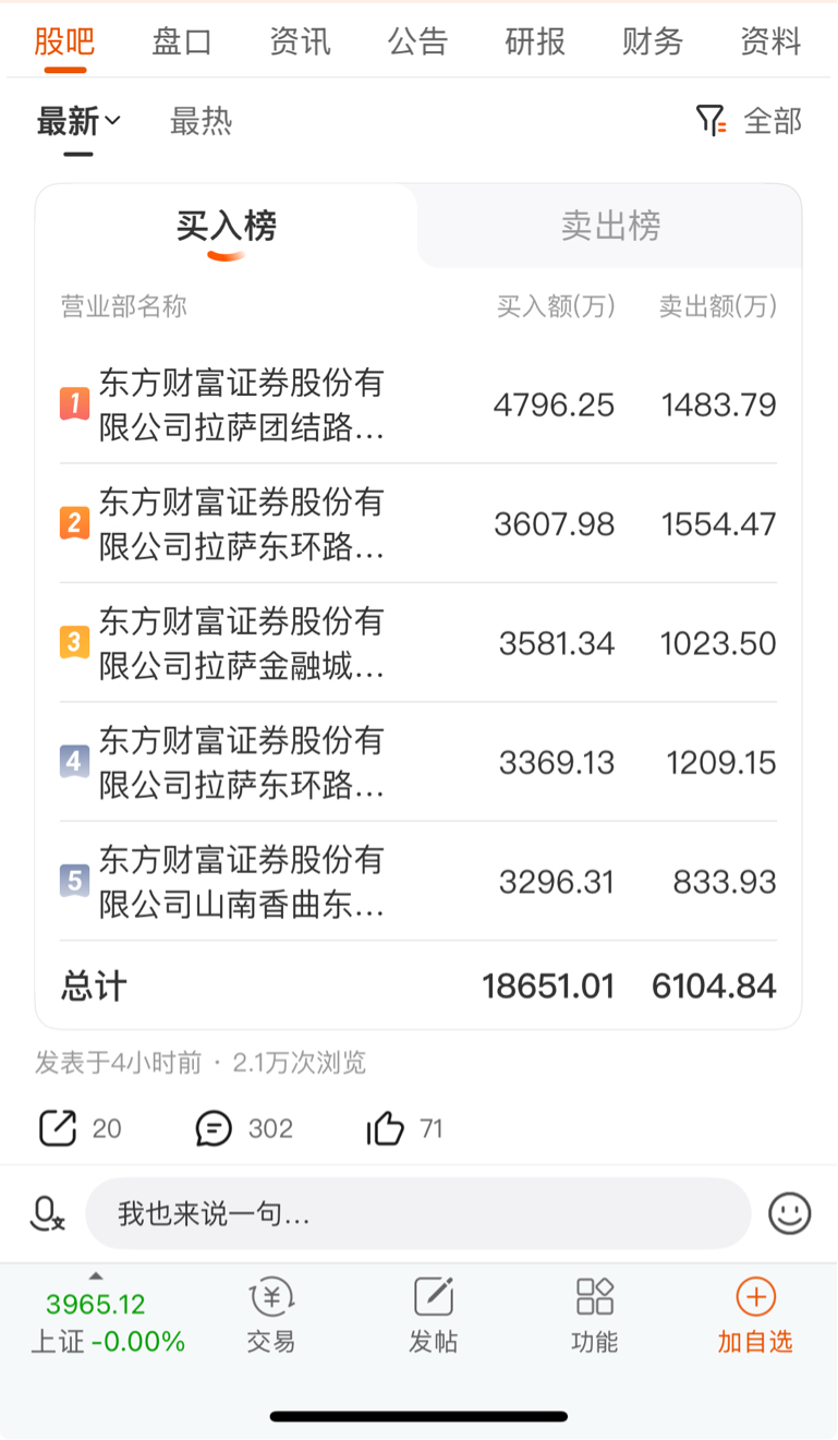 温馨提示: 1.根据《证券法》规定,禁止编造、传播虚假信息或者误导性信息,扰乱证券市场;2.用户在本社区发表的所有资料、言论等仅代表个人观点,与本网站立场无关,不对您构成任何投资建议。用户应基于自己的独立判断,自行决定证券投资并承担相应风险。《东方财富社区管理规定》