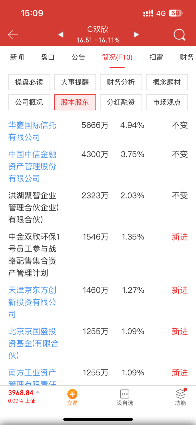 $C双欣(SZ001369)$ 十大股东全部是是持股百分之5以下的,一上市就套现跑完了