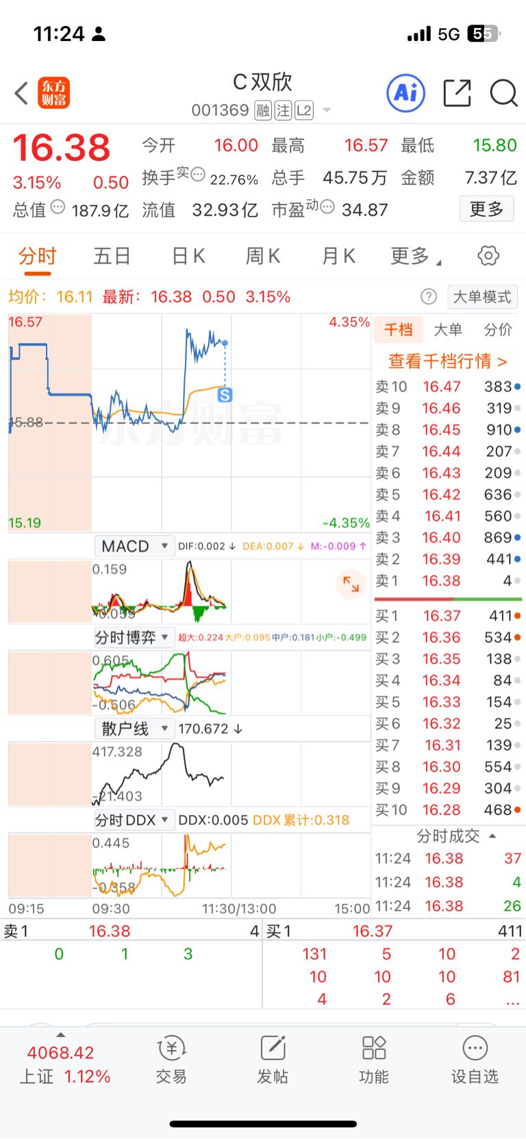 $C双欣(SZ001369)$ 大哥你可以涨了,进来就吃个兜