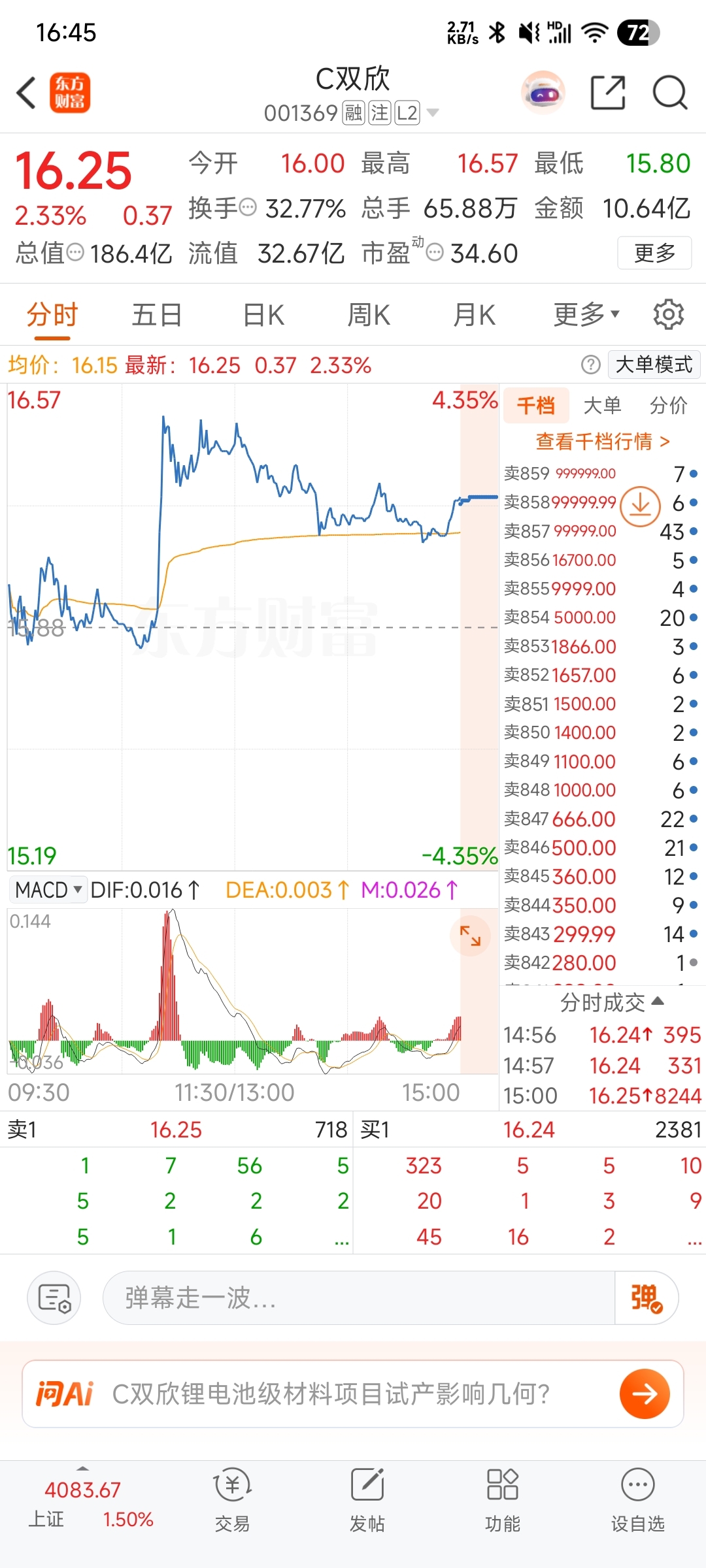 $C双欣(SZ001369)$ 明天开盘999999,已经有挂单了