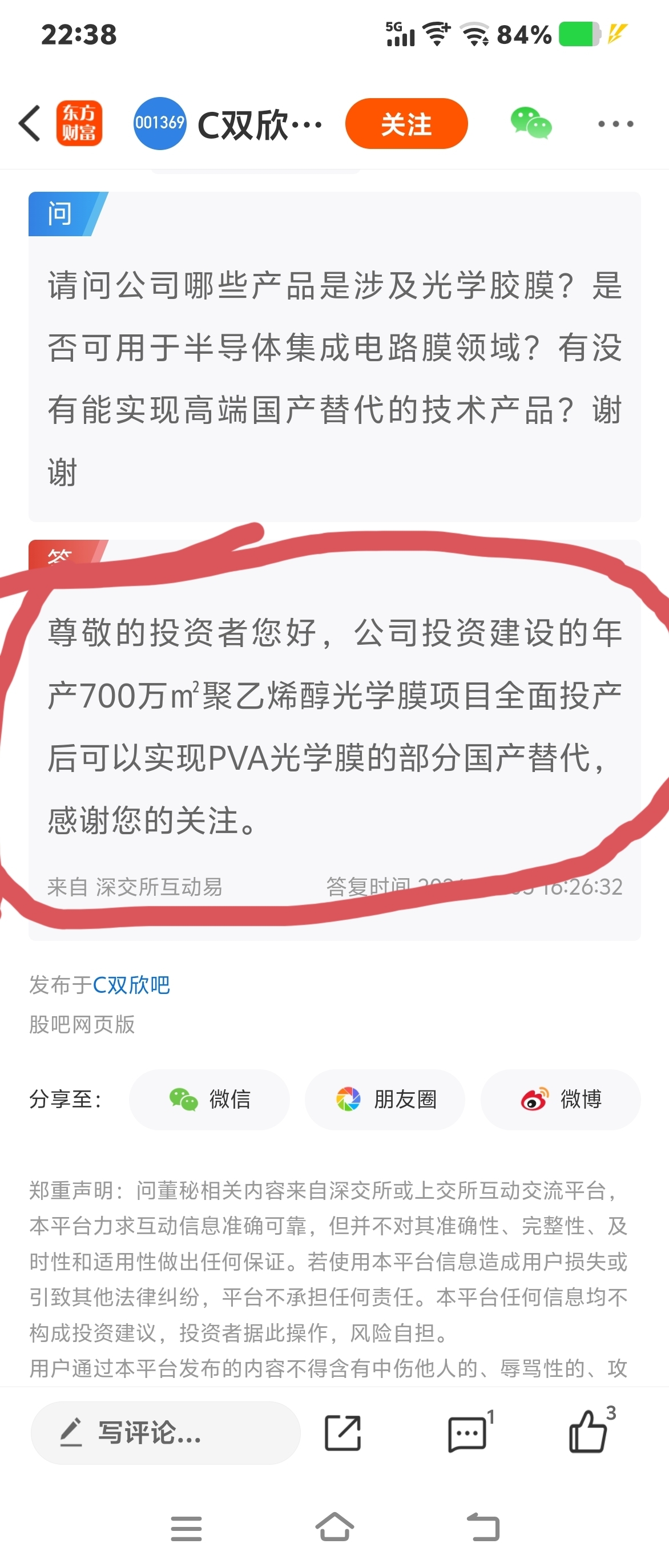 温馨提示: 1.根据《证券法》规定,禁止编造、传播虚假信息或者误导性信息,扰乱证券市场;2.用户在本社区发表的所有资料、言论等仅代表个人观点,与本网站立场无关,不对您构成任何投资建议。用户应基于自己的独立判断,自行决定证券投资并承担相应风险。《东方财富社区管理规定》