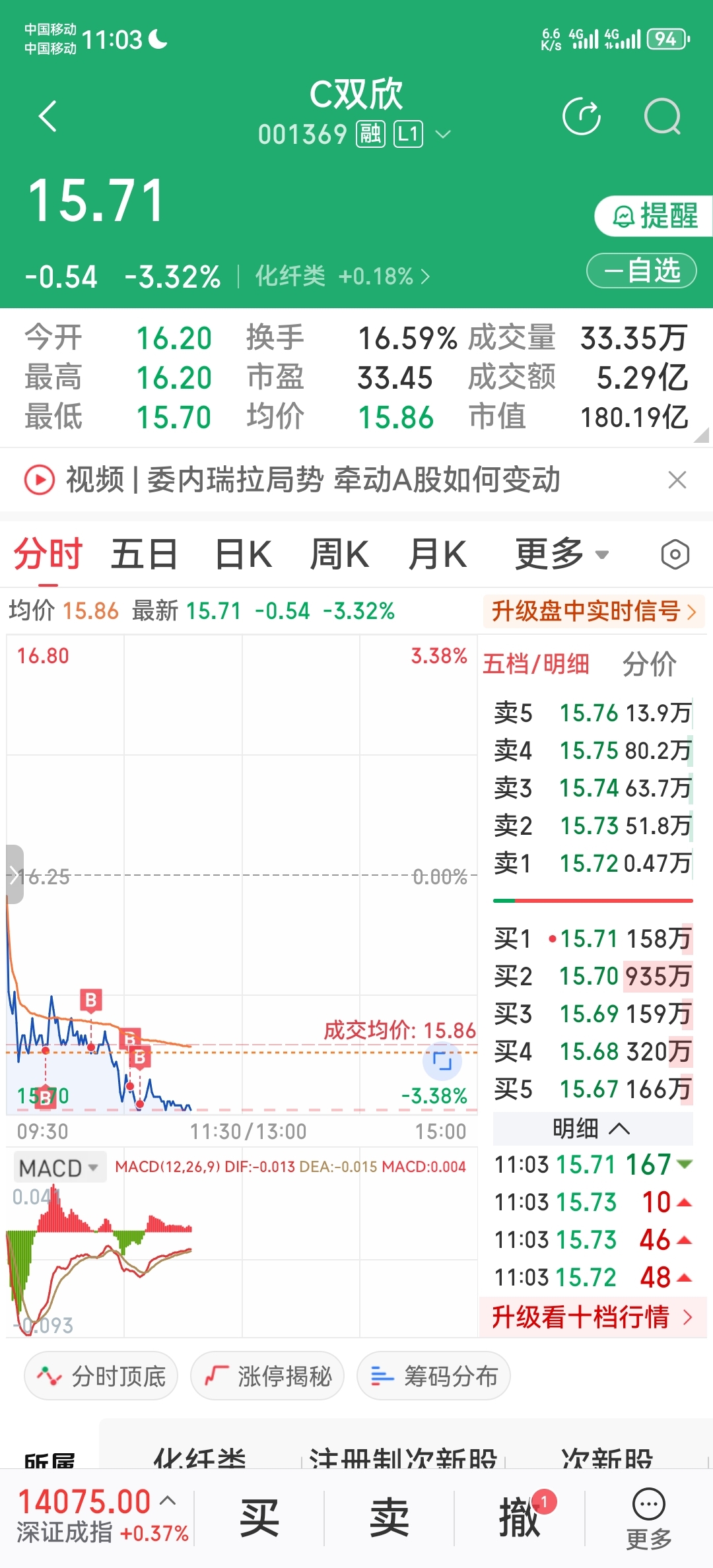 $C双欣(SZ001369)$ 挂单继续上,慢慢搞!