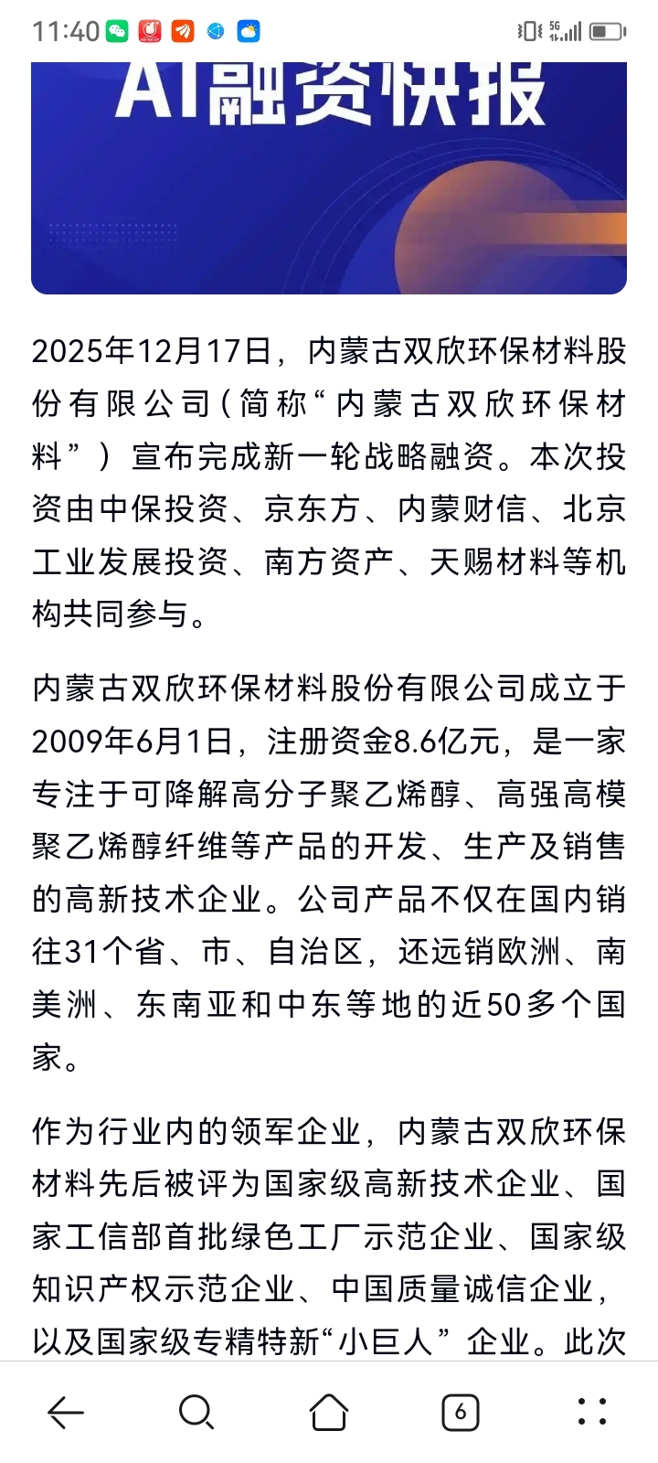 $双欣环保(SZ001369)$ 不看看战投是谁投资双欣?百度好好查查
