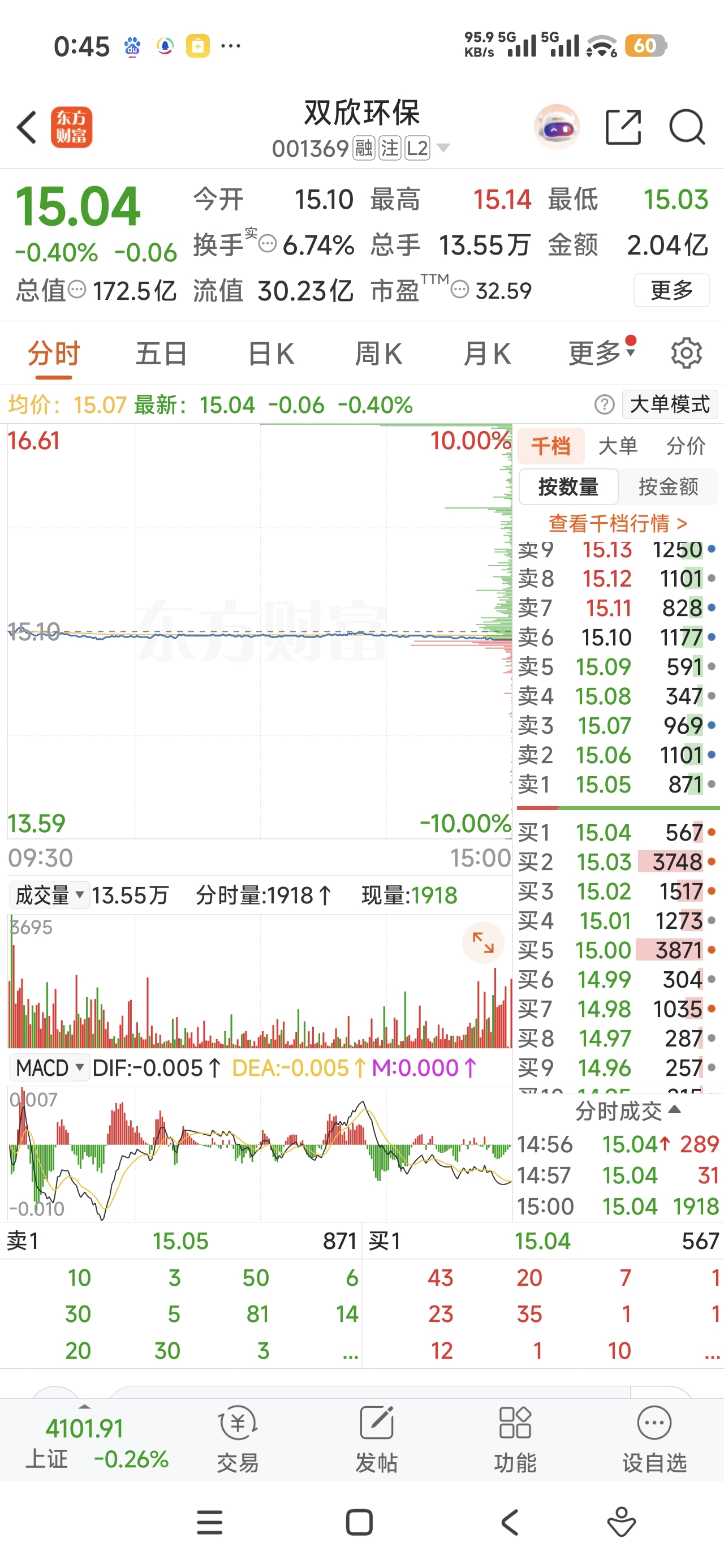 $双欣环保(SZ001369)$ 一条直线,我手画都没这么直,
