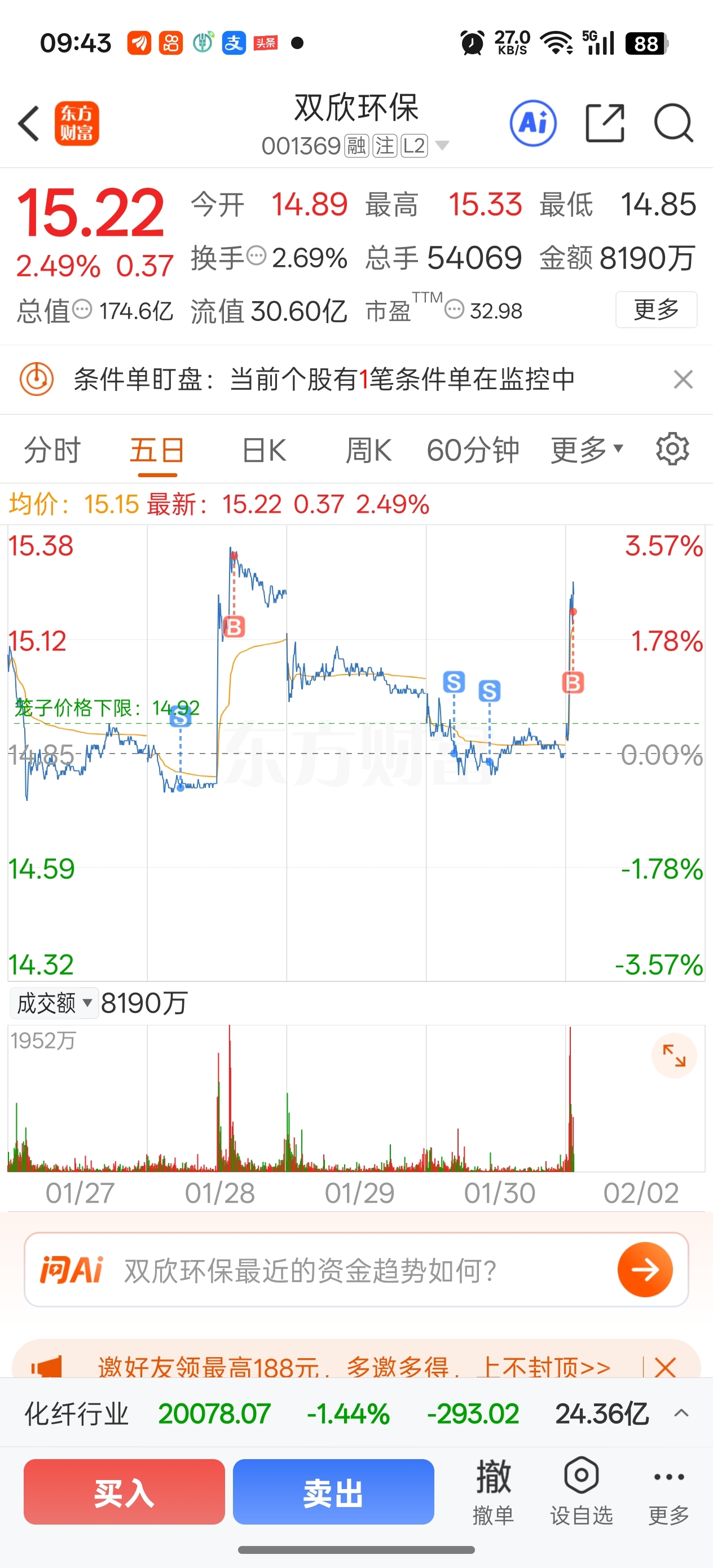 $双欣环保(SZ001369)$ 高买低卖绝了