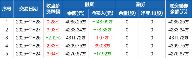 翔腾新材:融资净偿还148.09万元,融资余额4085.25万元(11-28)