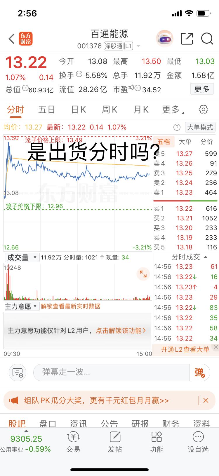 $百通能源(SZ001376)$ 今天的日线走势图形是拉高出货分时还是吸筹分时?大家讨论一下