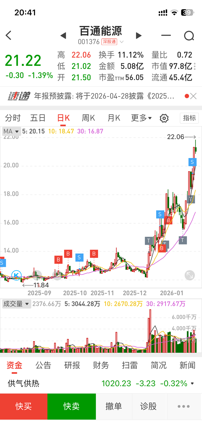 $百通能源(SZ001376)$ 坚定持有,不到30不下车,可惜虽然中间反T2次