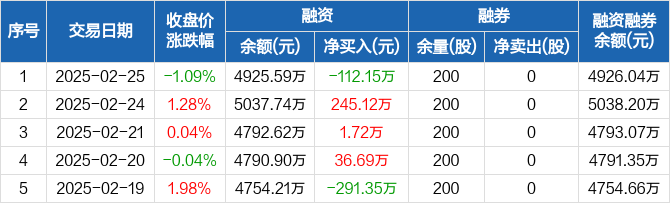 德冠新材:融资净偿还112.15万元,融资余额4925.59万元(02-25)