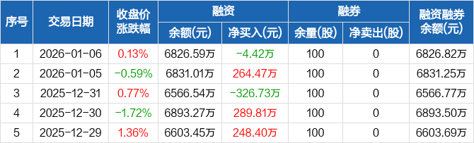 德冠新材:融资净偿还4.42万元,融资余额6826.59万元(01-06)