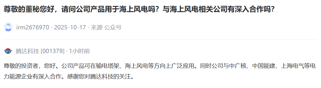 腾达科技:公司与中广核、中国能建、上海电气等有深入合作