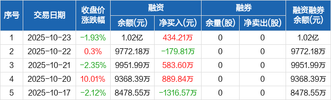 腾达科技:融资净买入434.21万元,融资余额1.02亿元(10-23)