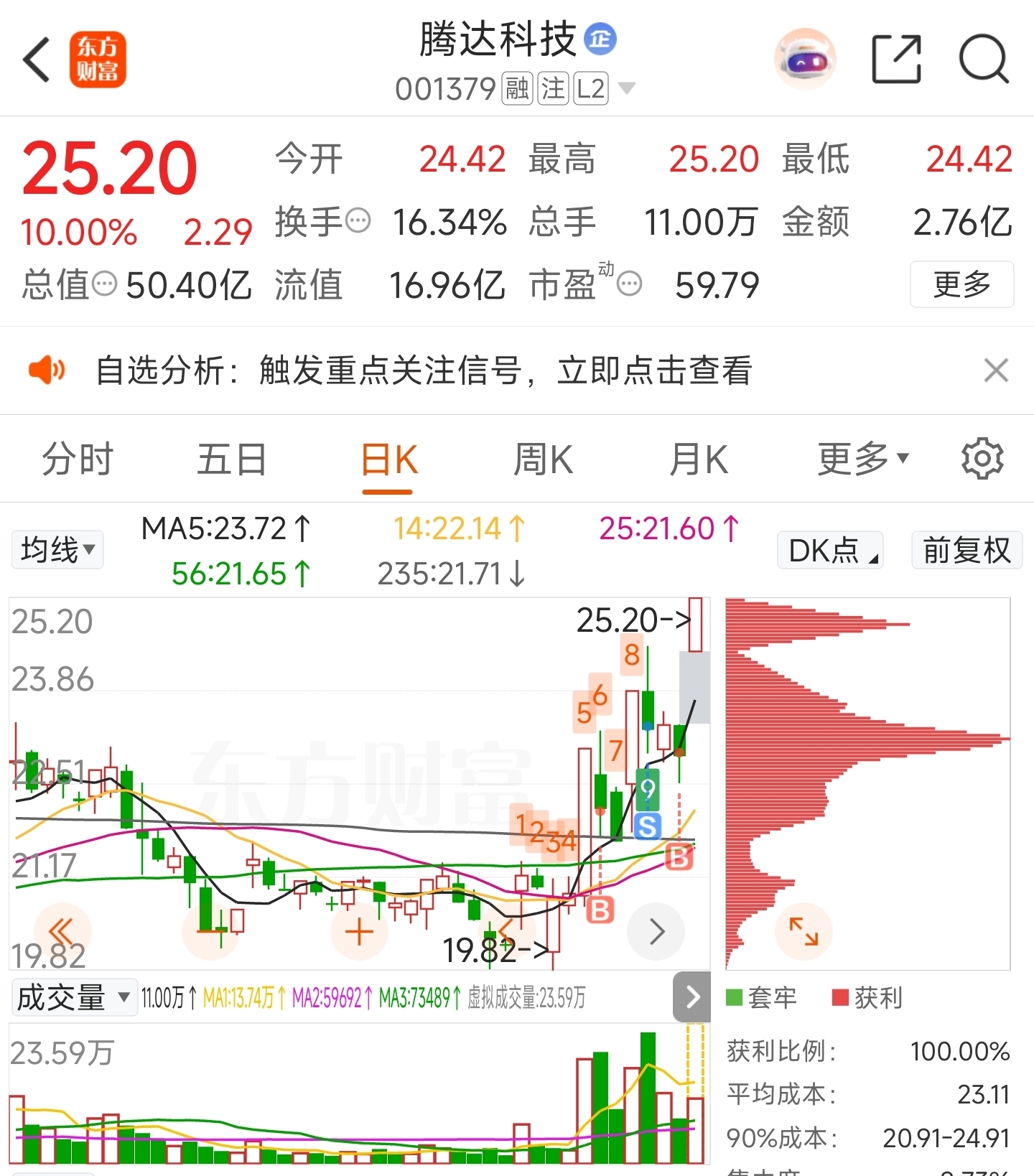 $腾达科技(SZ001379)$ 是不是要卖了,上次涨停没卖,周一又得回踩啊