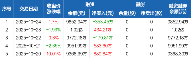 腾达科技:融资净偿还353.45万元,融资余额9852.94万元(10-24)
