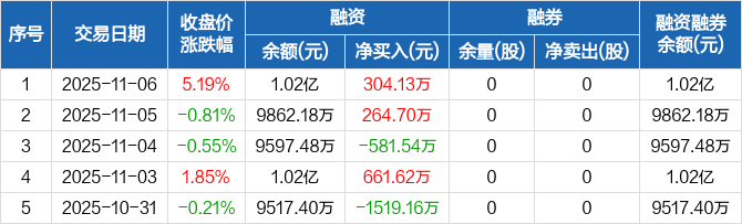腾达科技:融资净买入304.13万元,融资余额1.02亿元(11-06)