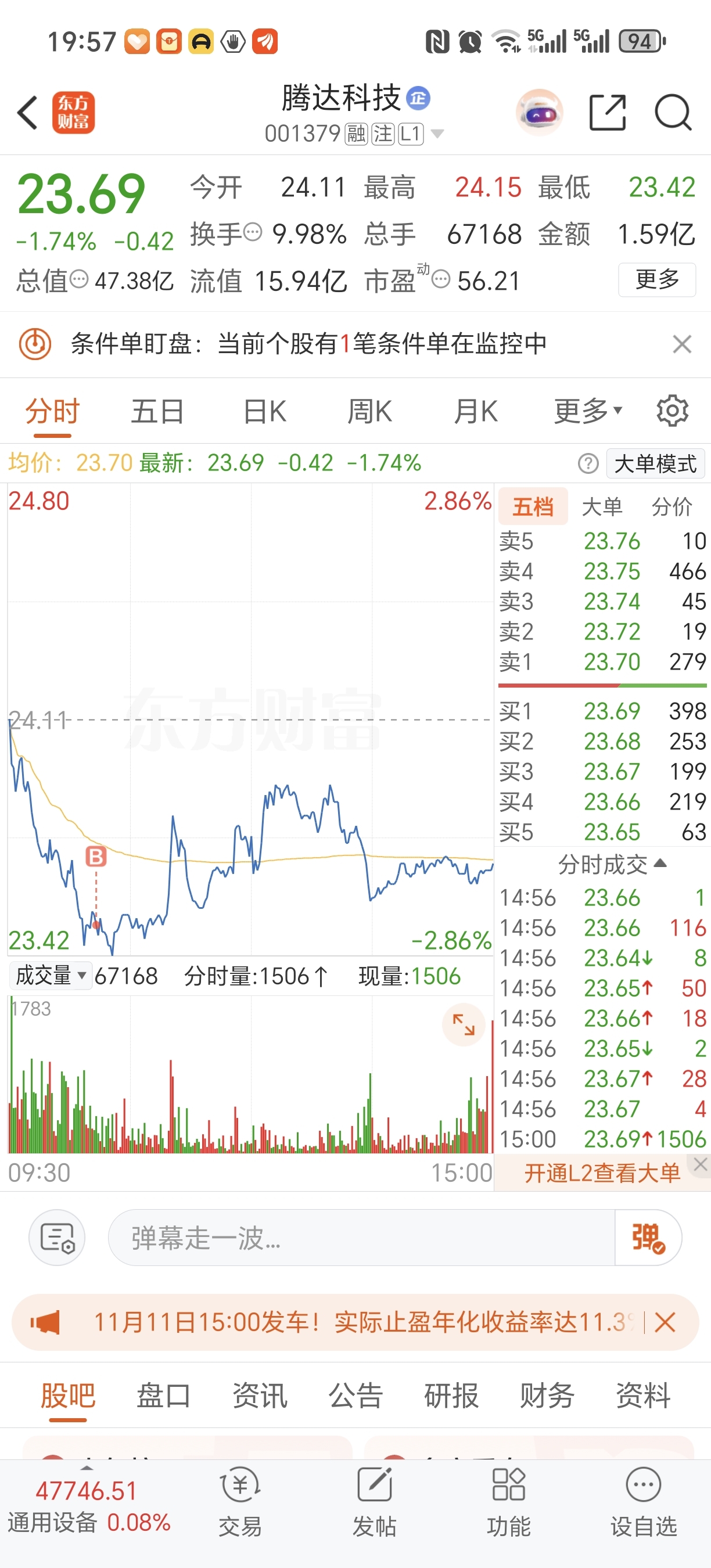 $腾达科技(SZ001379)$ 又不点,明天吃肉