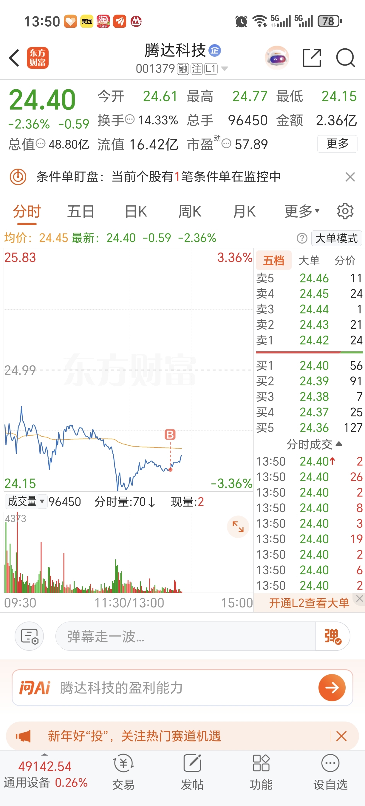 $腾达科技(SZ001379)$ 下周可以吃肉
