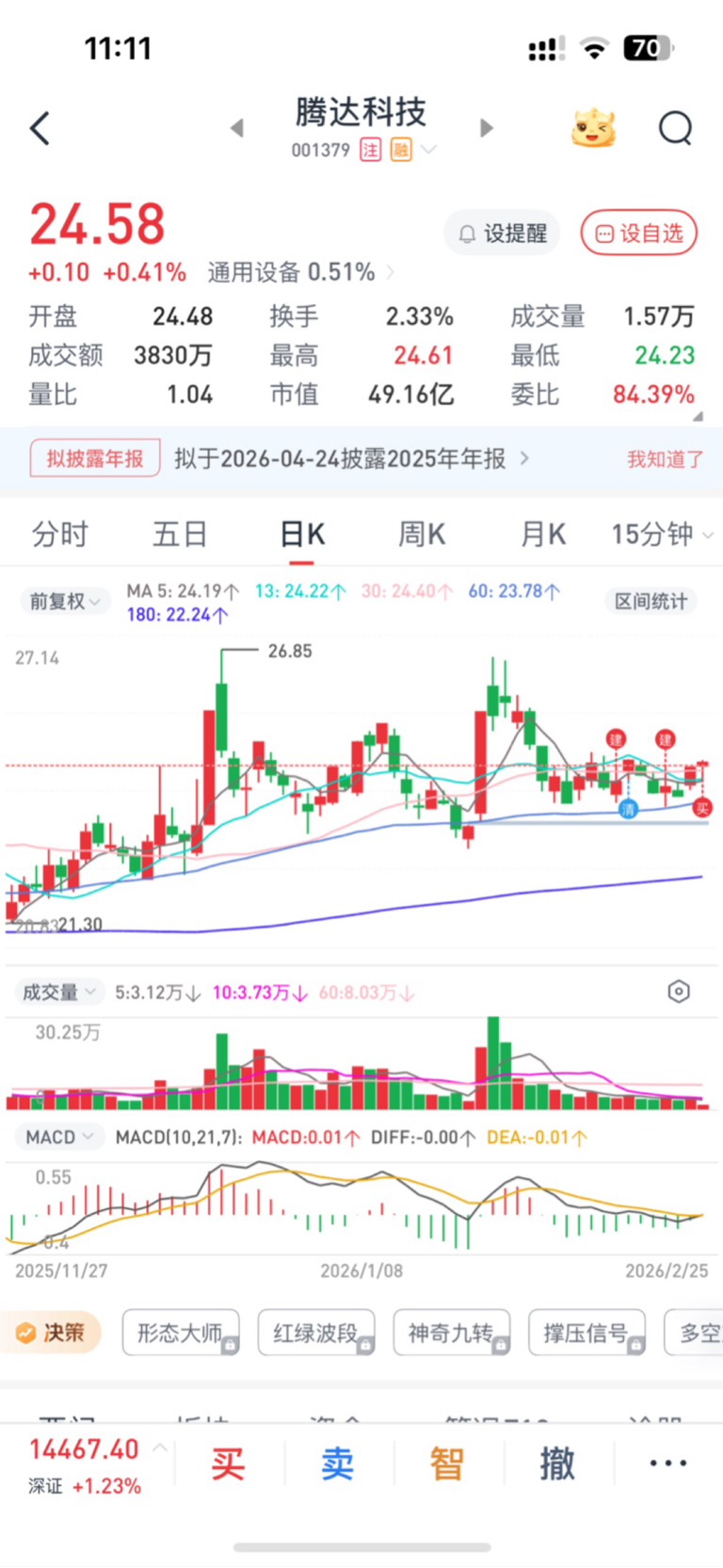 $腾达科技(SZ001379)$ 满上了,是福不是祸,来埋我