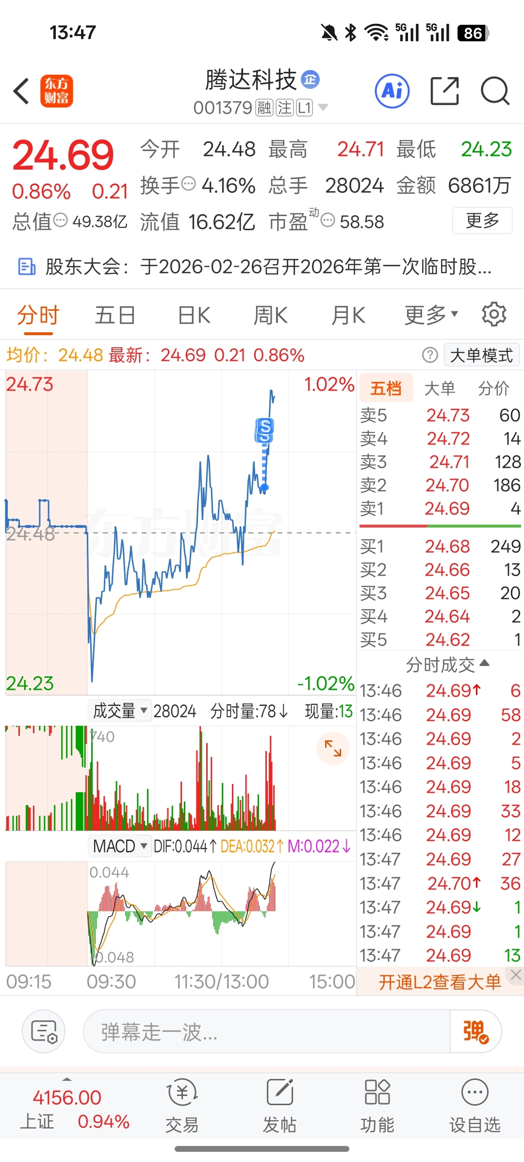 $腾达科技(SZ001379)$ 感觉就像盯着我的仨瓜俩枣似的
