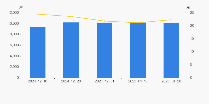 2024年12月10日至今,公司股东户数有所增长,区间涨幅为8.21%。2024年12月10日至2025年1月20日区间股价下降8.68%。