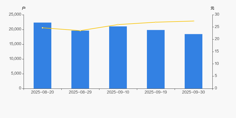 2025年8月20日至今,公司股东户数显著下降,区间跌幅为17.46%。2025年8月20日至2025年9月30日区间股价上涨11.14%。