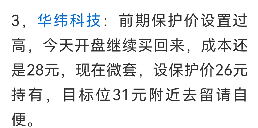 $华纬科技(SZ001380)$ NND,你要跌破26元,老夫就被洗了。提前恭喜持有该股的朋友们!