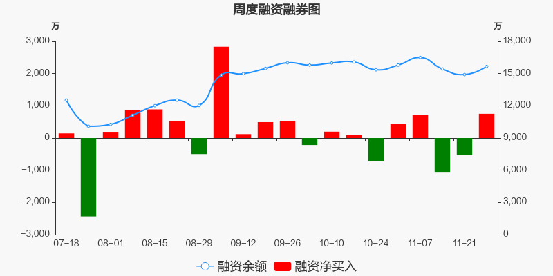 华纬科技本周(2025/11/24-2025/11/28)累计跌幅达2.89%,截至11月28日最新股价报收23.52元。从增量上来看,11月24日至11月27日融资买入交易规模5136.38万元,融资偿还规模4383.62万元,期内融资净买入752.76万元。从存量上来看,截止11月30日,华纬科技融资融券余额1.57亿元,其中融资余额规模1.57亿元,融券余额规模0元。