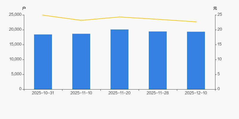 截至2025年12月10日,公司最新总股本为2.71亿股,其中流通股本为8800.39万股。户均持有流通股数量由上期的4531股上升至4551股,户均流通市值10.32万元。