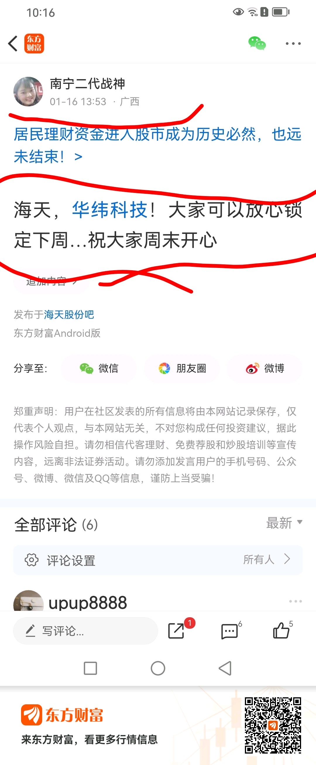 温馨提示: 1.根据《证券法》规定,禁止编造、传播虚假信息或者误导性信息,扰乱证券市场;2.用户在本社区发表的所有资料、言论等仅代表个人观点,与本网站立场无关,不对您构成任何投资建议。用户应基于自己的独立判断,自行决定证券投资并承担相应风险。《东方财富社区管理规定》