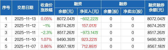 新亚电缆:融资净偿还602.22万元,融资余额8072.04万元(11-13)