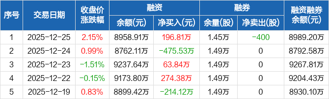 新亚电缆:融资净买入196.81万元,融资余额8958.91万元(12-25)
