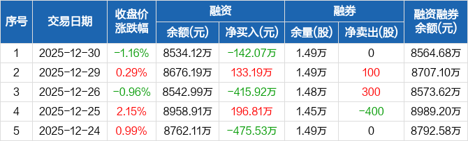 新亚电缆:融资净偿还142.07万元,融资余额8534.12万元(12-30)