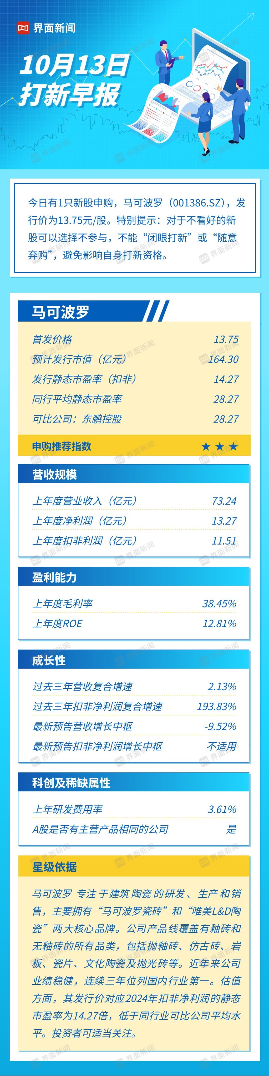 打新早报| 瓷砖龙头马可波罗今日申购,发行估值14.27倍具显著优势