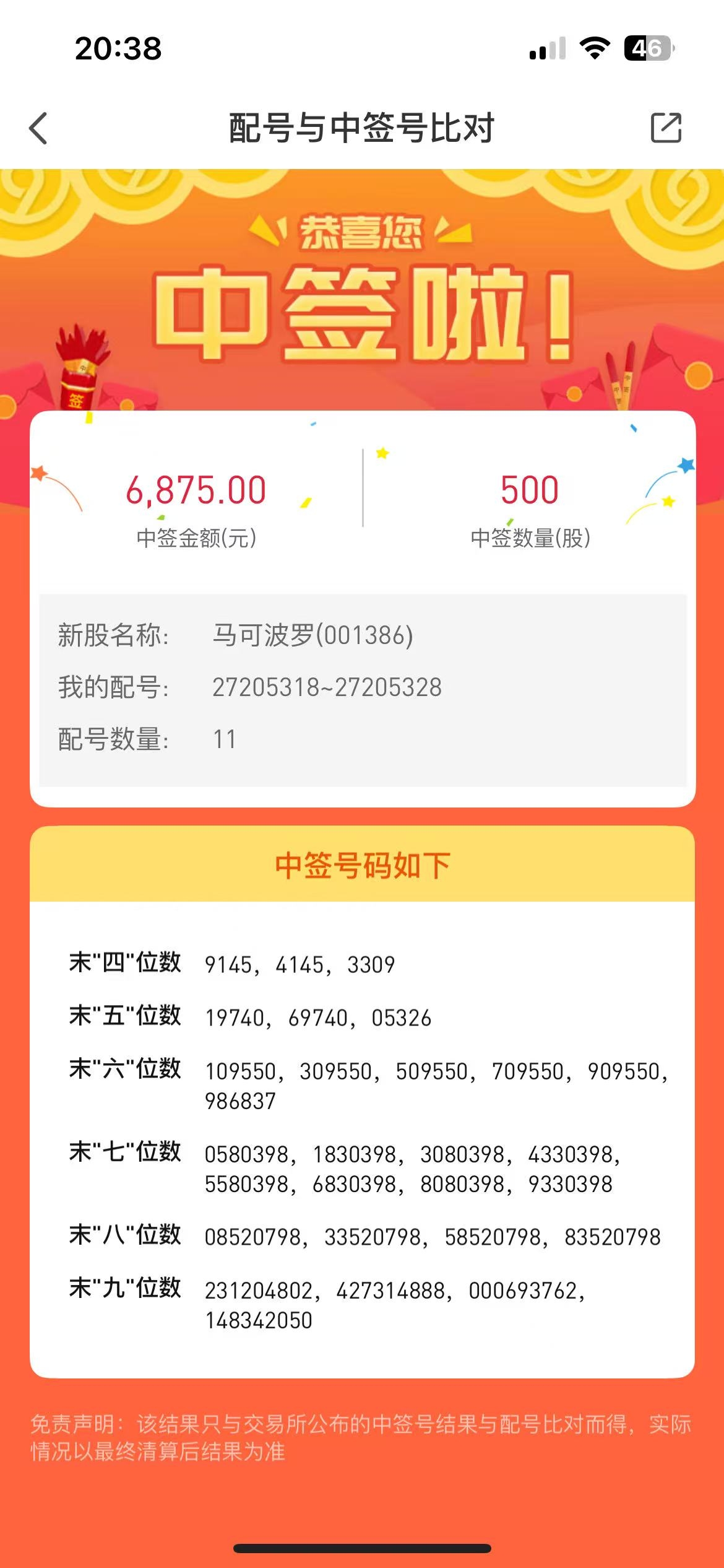 $马可波罗(SZ001386)$ 开奖了,中签号在这里,都沾沾喜气!大家都能中签!