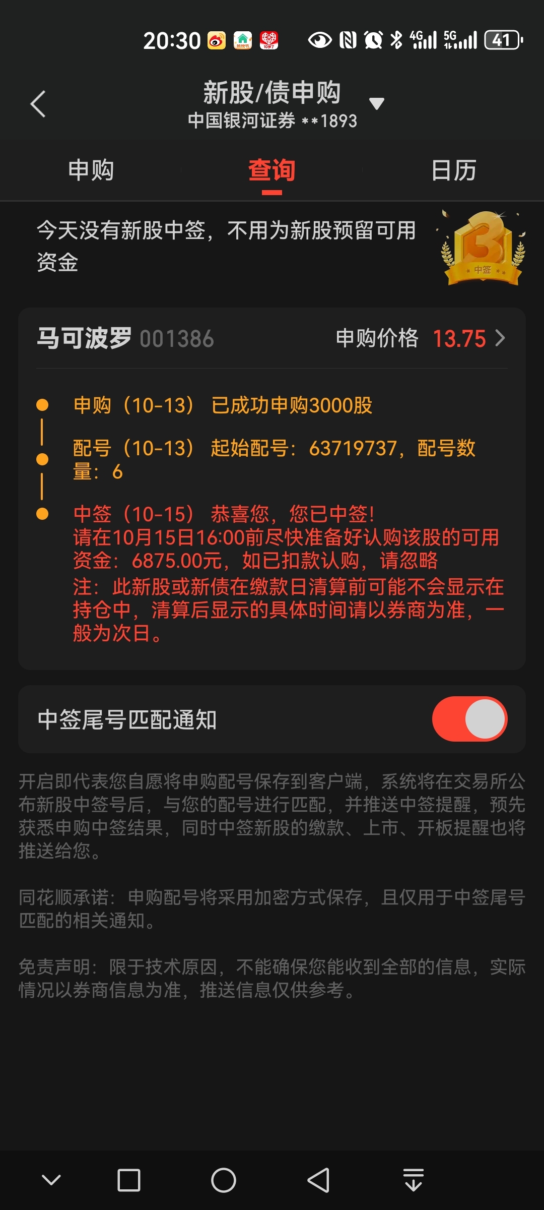 配号6个就中了,这是这个最小的账号最近两个月第二次中了。我也是醉了。大的好几个账