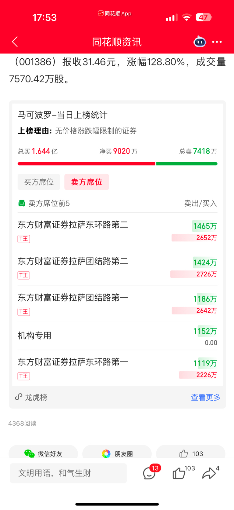 $N马可波(SZ001386)$ 机构锁仓?家人们?……