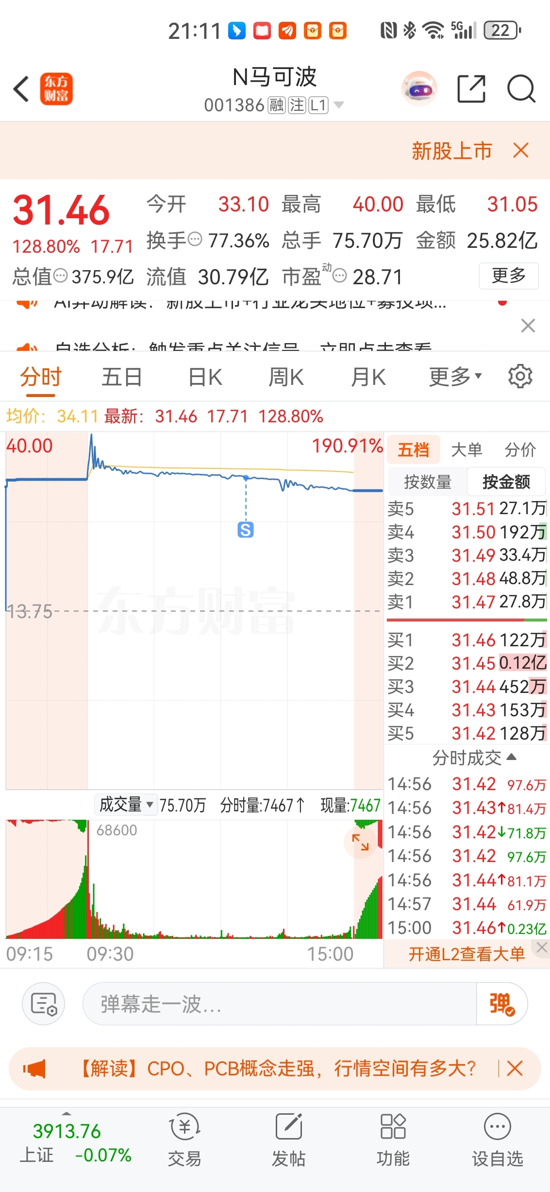 $N马可波(SZ001386)$ 还是没抗住卖了,早上不舍得卖少赚了几千块